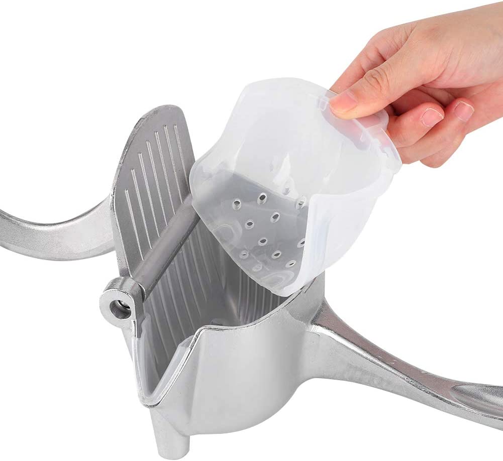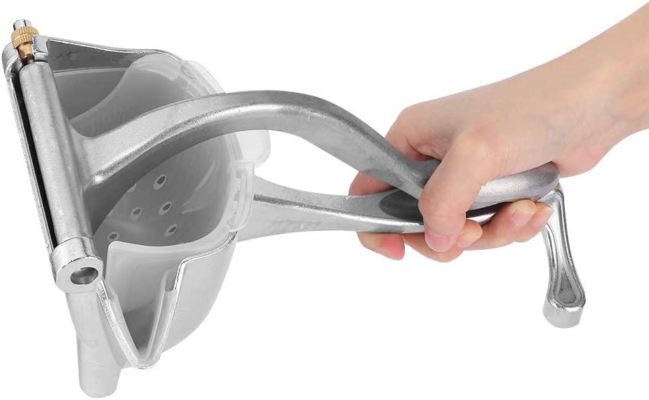- FÁCIL DE USAR: Ponga la fruta en un recipiente perforado y presione el mango para que el zumo salga del exprimidor.